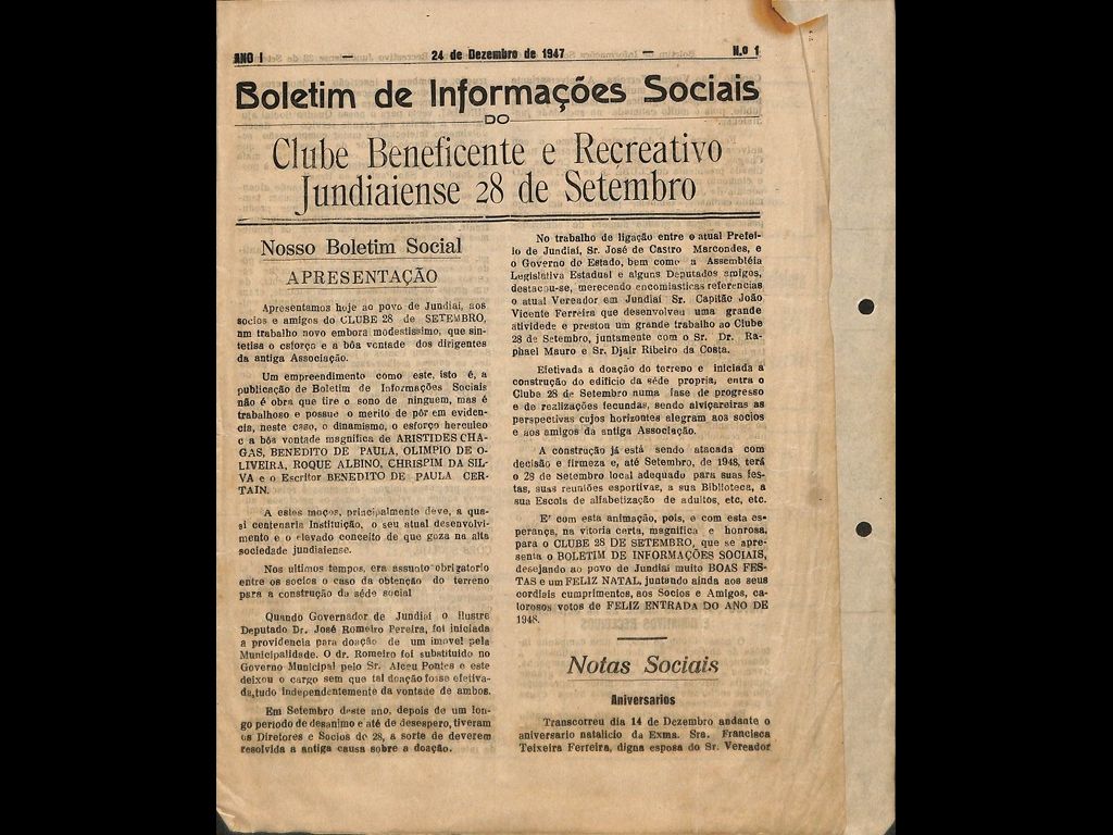 Acervo do Clube Beneficente Cultural e Recreativo Jundiaiense 28 de Setembro. - Data:
