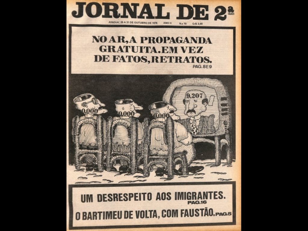 Esta edição trouxe a manchete: No ar, a propaganda gratuita. Em vez de fatos, retratos; Um desrespeito aos imigrantes; O Bartimeu de volta, com Faustão. - Conteúdos: